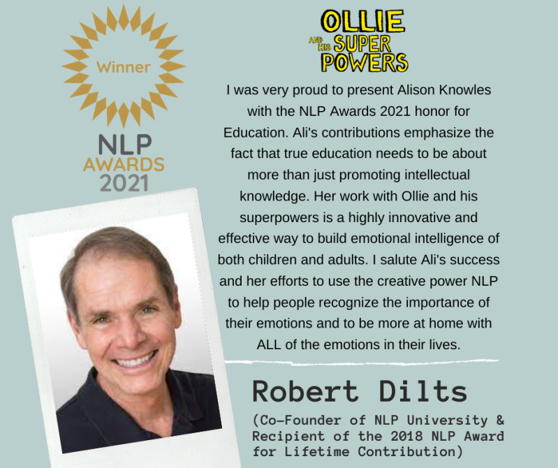 Ollie and His Superpowers is an award winning coaching model developed by practitioner, author and trainer Alison Knowles. When Alison was working with children in difficult circumstances, the idea for superpowers to represent emotions came to her and she created the character of Ollie to help children (old and young!) to understand their emotions and how they can work for and against them in different situations and most importantly how to change them into something helpful and useful, quickly and effortlessly.